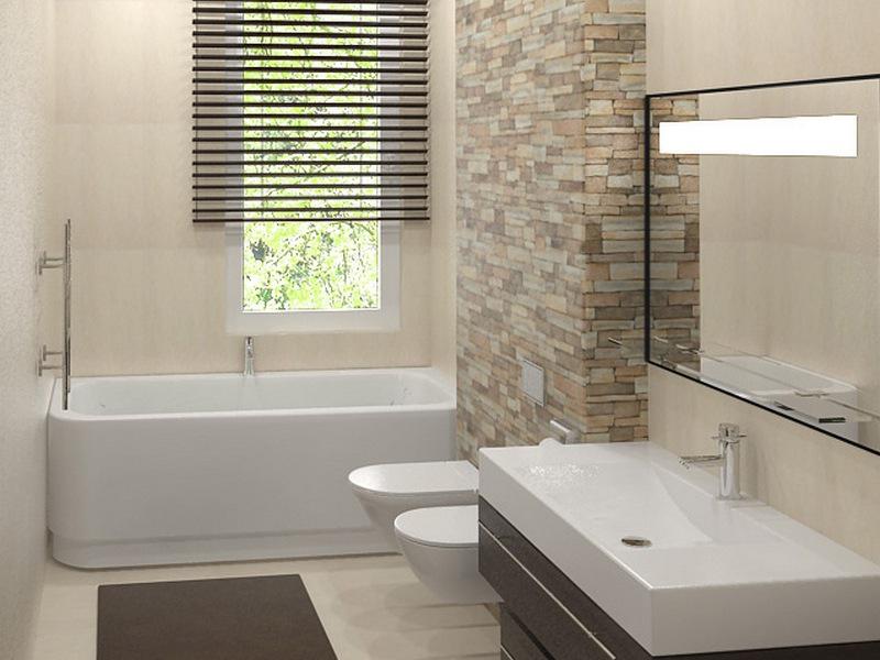 - A fully tiled bathroom looks overloaded. Therefore, it is recommended that one or two walls be made plain.