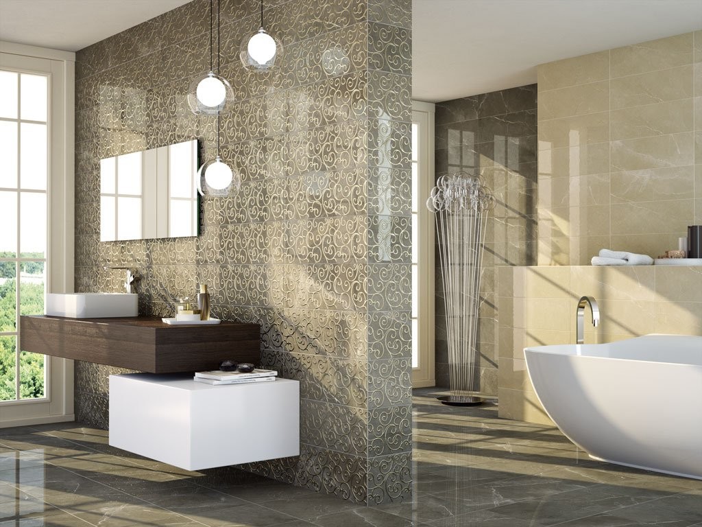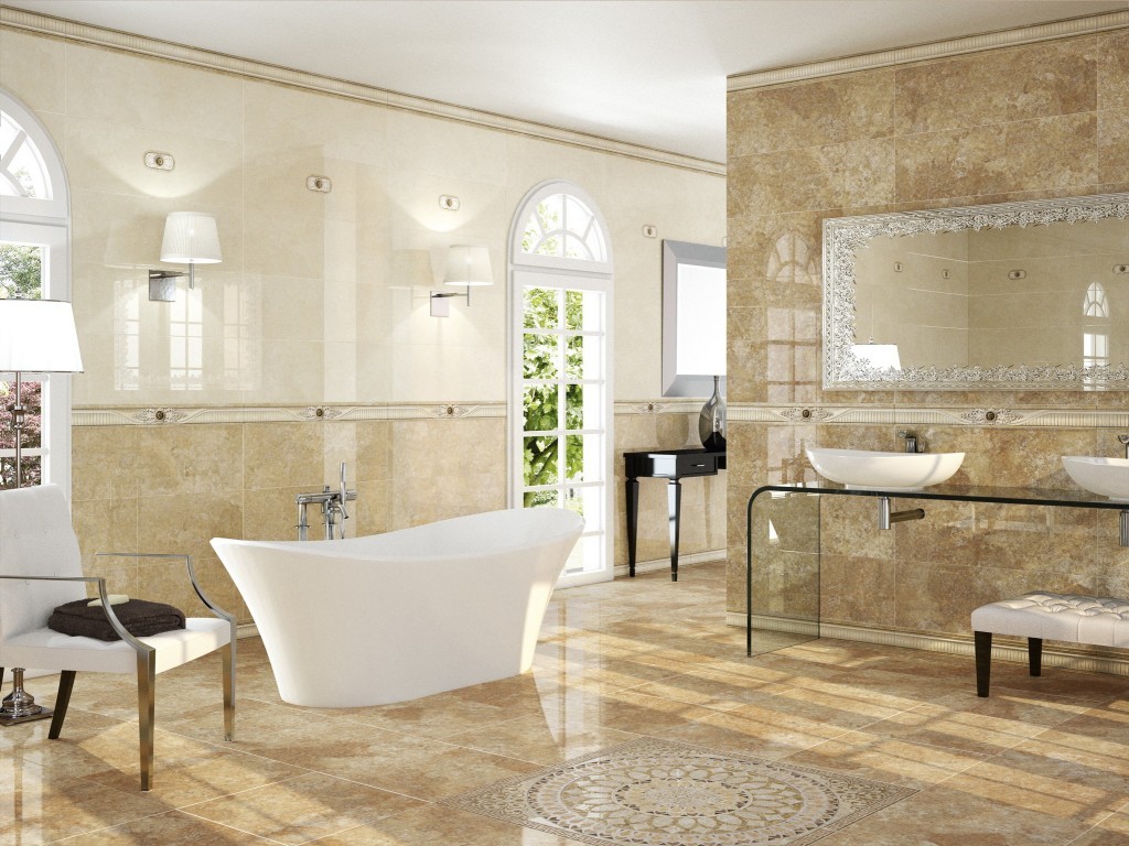 To create a spectacular bathroom tile design it is worth using porcelain tile. It looks beautiful, there are options for decoration bathroom in baroque style. Floor tiles are used in most homes because they are not afraid of any things falling. Views are ideal for wall decoration.