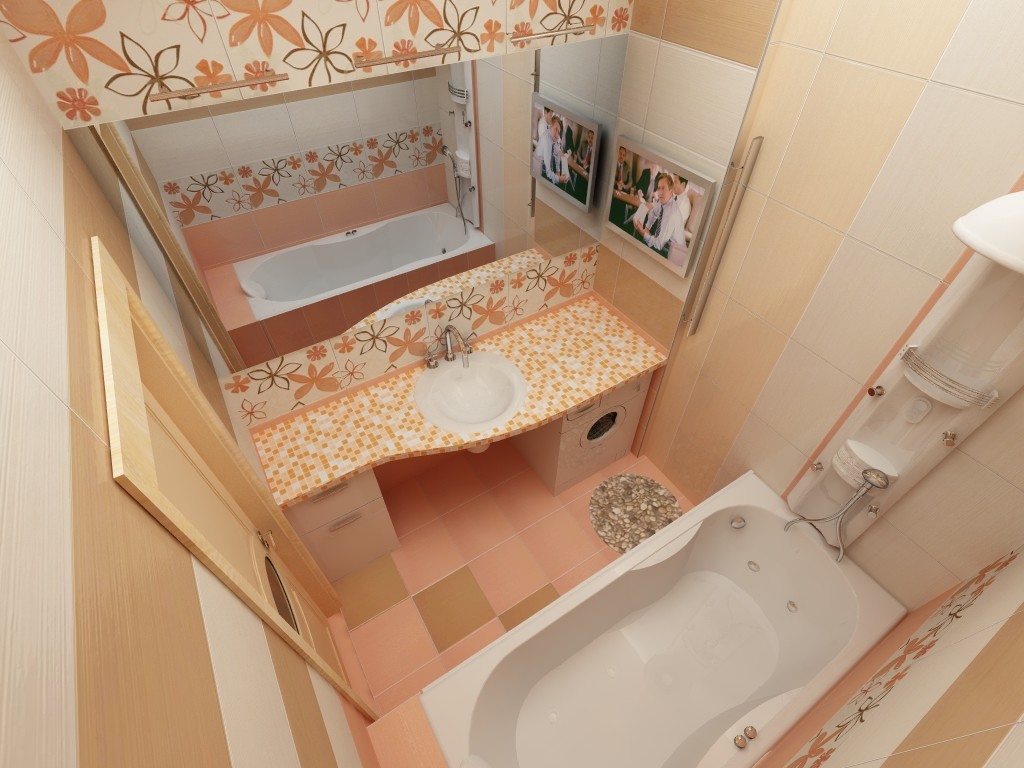 Problems arise due to the small room. Owners of private houses or expensive apartments can afford large bathroomsin which you can nicely arrange the tile. In ordinary apartments there is not enough space, you have to follow some rules to make the room beautiful, comfortable and visually increase it.