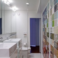The walls of the toilet and the bathroom are usually tiled with the same size.