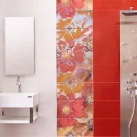 In modern design solutions, a combination of tiles of different sizes and colors is often used. It is considered fashionable to use the alliances of scarlet with green, purple with yellowish, blue with orange.