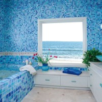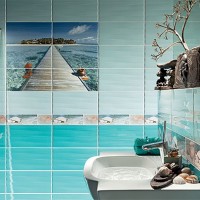 - Blue and cyan tiles are most successful as a substitute for light-colored tiles. The marine theme is very popular today.