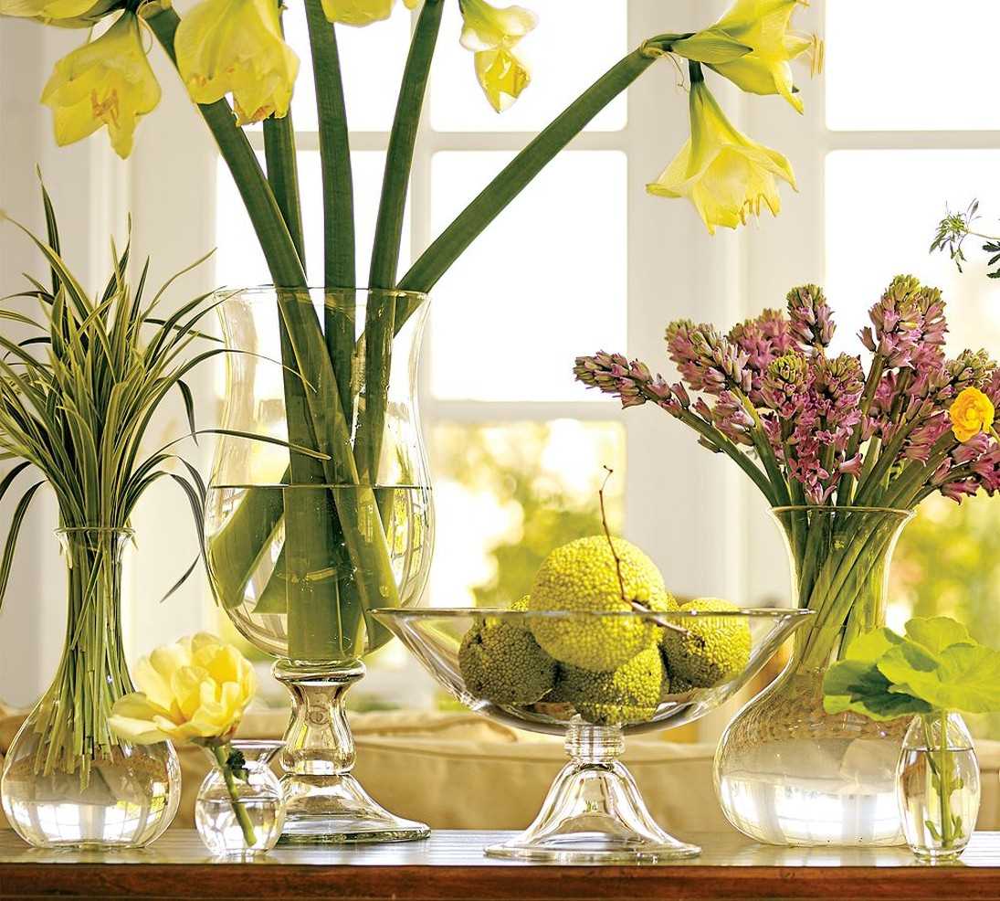 Transform an existing picture is possible with minor details. First of all, these are flowers. A clear vase with fresh water, pebbles and live petals is clear evidence of the changing season. Colorful motifs of flowers are used in decorating walls, curtains, textiles, and artwork. The main thing in this case is not to overdo it.