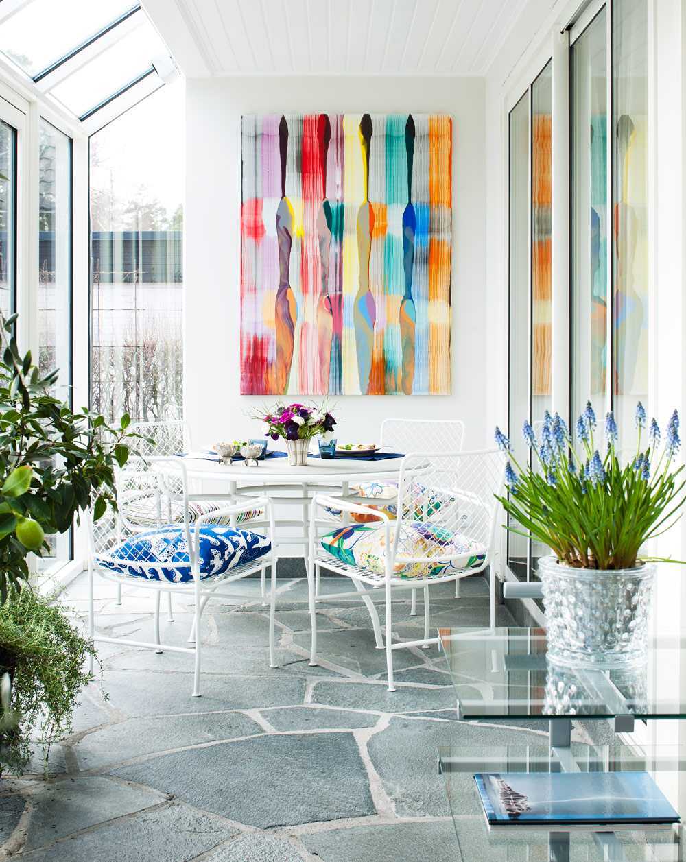 2) Add a touch of comfort by placing colorful textiles on sofas and armchairs.