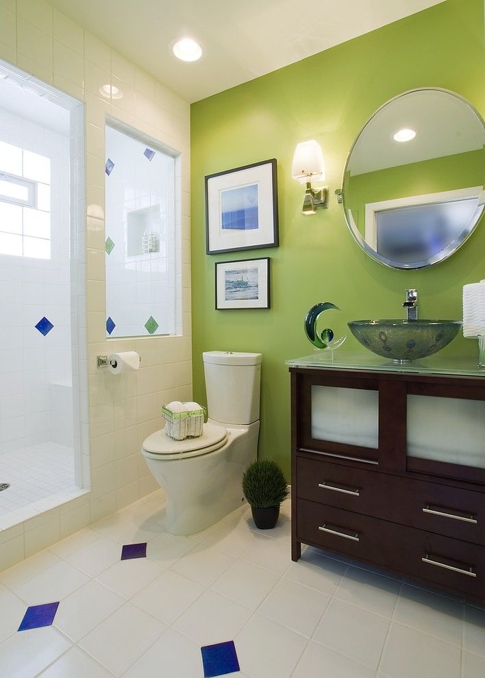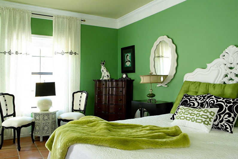 Intense light green, juicy blue-green color, herbal - these shades can become expressive green accents on a more neutral and restrained background.Having picked up textiles, decor, curtains, furnishings in this palette you will revive the room.