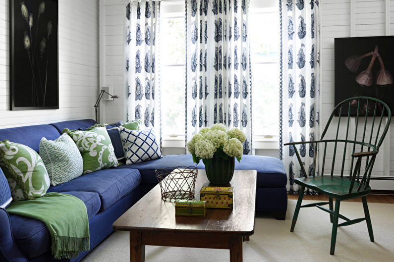 Most often, this bottomless color is used in interior design in its darkest and most deaf versions. However, in a pure uncomplicated form, he also has the right to exist. Blue accessories contrasting with a more neutral environment, decorative details, pillows often look very impressive.