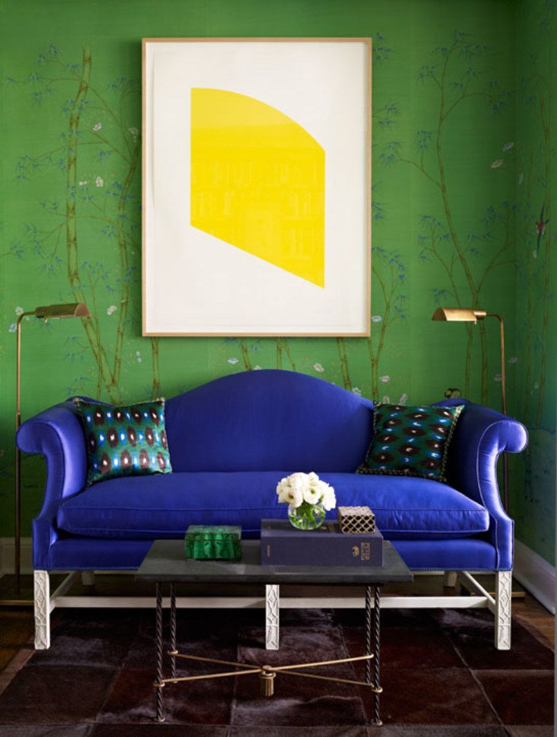Together with green, this paint is at a height only when there is their penetration into each other. That is, when thick greens have at least a subtle blue tint. And in the sky-cobalt, the presence of a green coloring pigment is felt. Such combinations are very beautiful, but it is difficult to apply them. Not every professional designer decides on this.