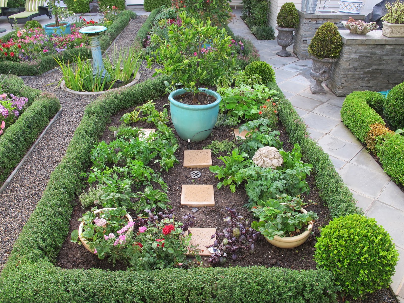 Walls of flowers and low hedges