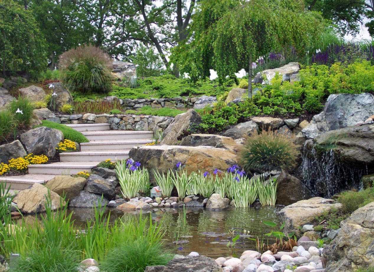 - A small area is not a reason to abandon landscaping. Use vertical layout using alpine slides, ledges and cascades.