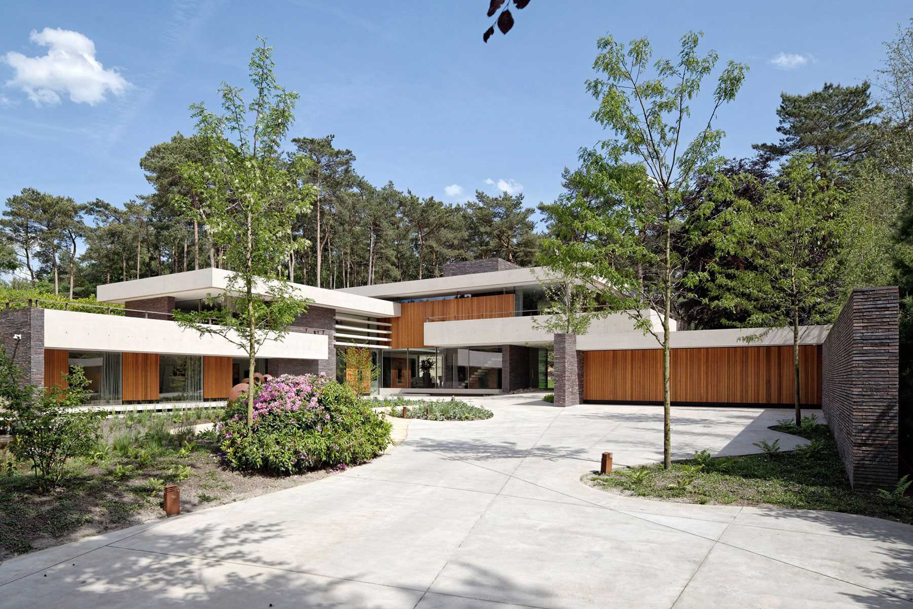 This style is ideal if the house is located in the back of the plot and demonstrates an open facade. Then in the courtyard you can place an alley leading to the front door, and in the back yard to arrange a recreation area.