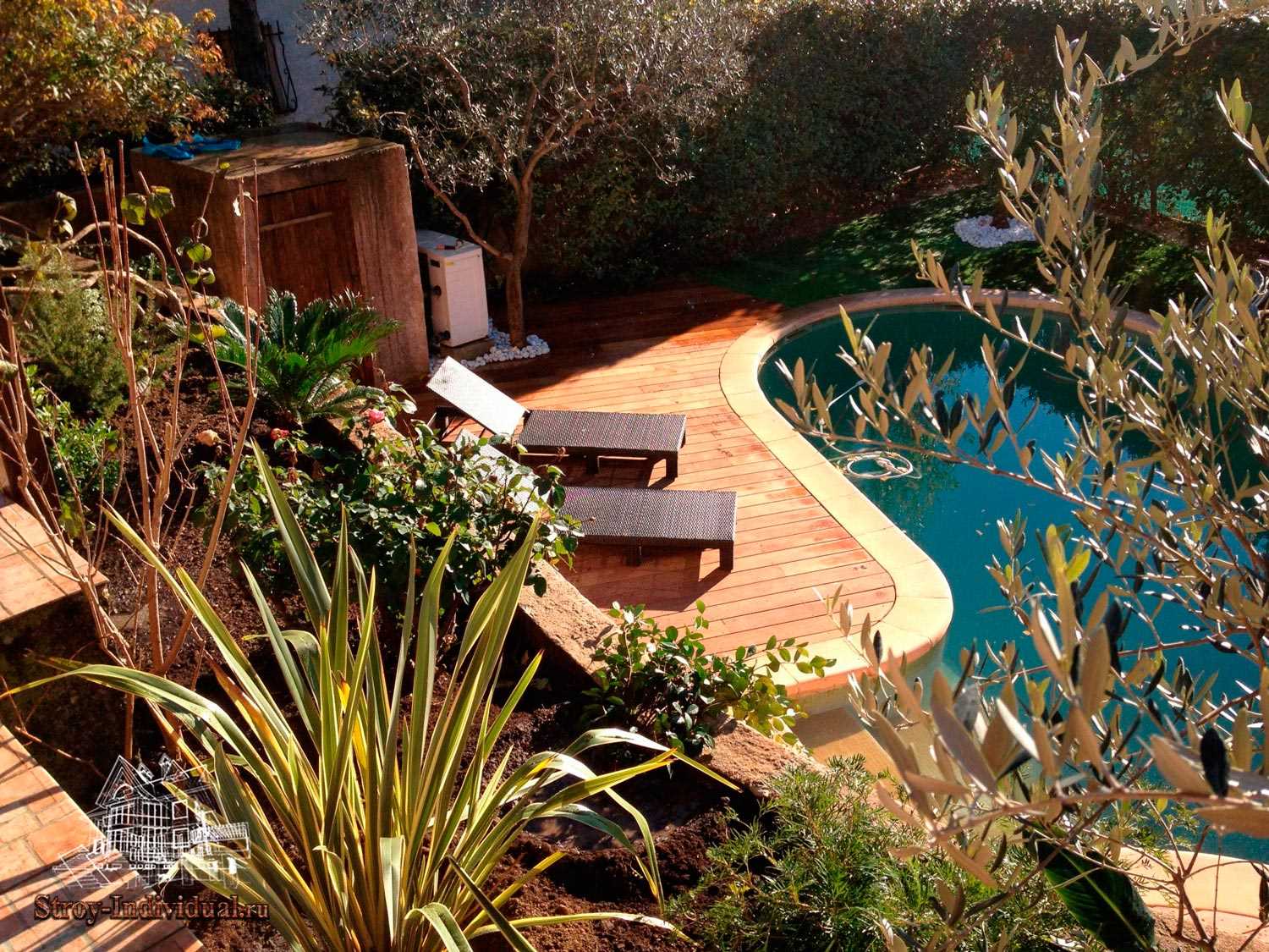 An artificial pond in the form of a small pond also fits perfectly here.