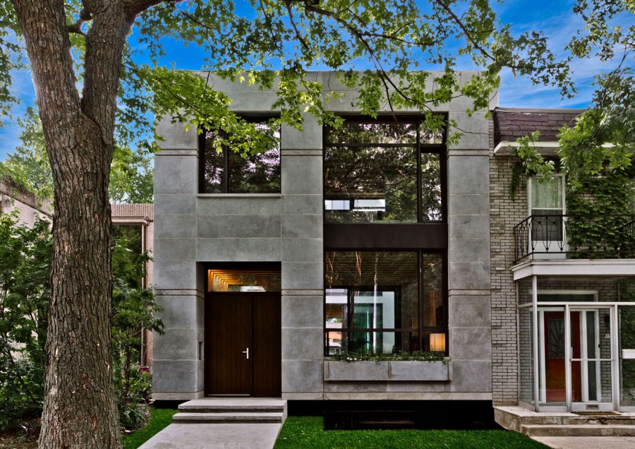 The modern design of the facade is a kind of mix, borrowing from various stylistic trends