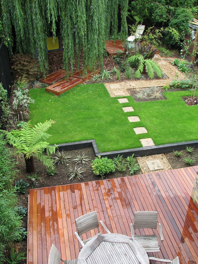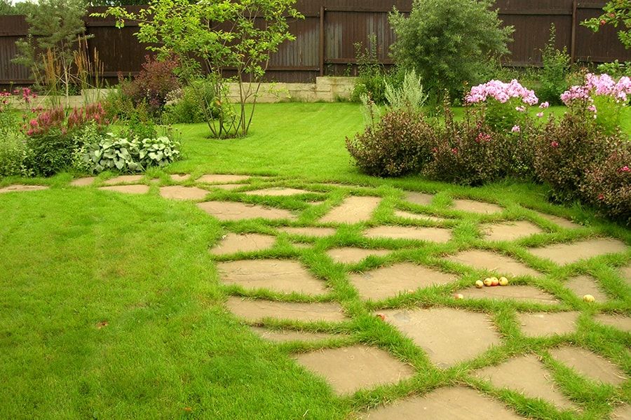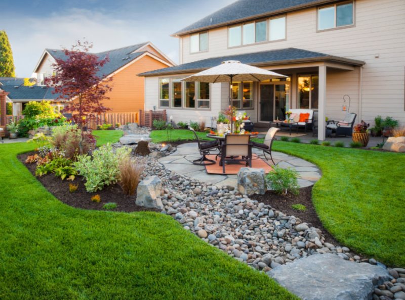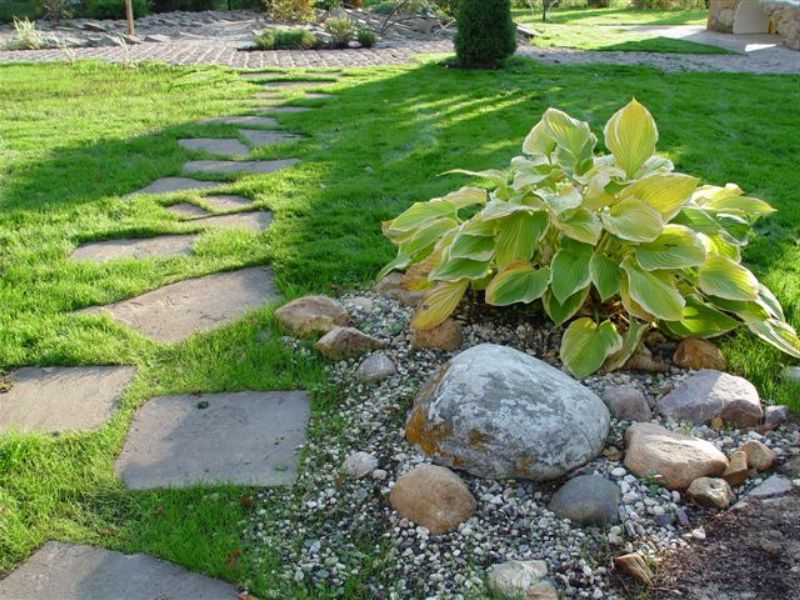 At the last stage of landscape planning, it remains to sow the seeds of lawn grass on the remaining land, or to purchase ready-made carpets. You can also fill up these “bald patches” with rubble, but this option is not practical due to the strong heating of the fraction from sunlight. Where it is better to go barefoot on a green and soft lawn.