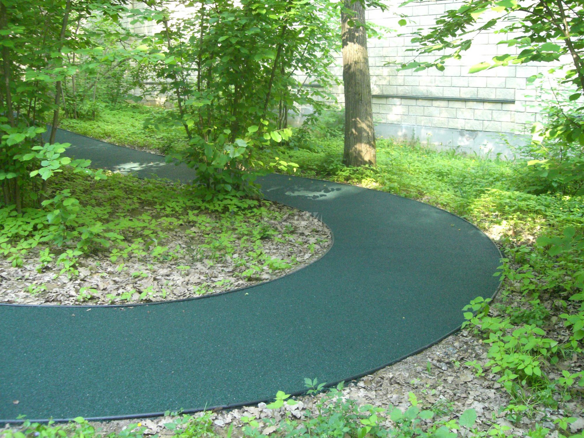Thanks to the rough terrain, you can create a beautiful mountainous terrain. In this case, it is advisable to place the tracks in lowlands, on both sides of which rocky rocks are laid out in the form of plates, which in turn are planted on concrete mortar. Earth on a hill is dotted with lawn, or creeping plants. The main principle of this decision will be the use of natural colors for mountainous areas, namely a green hue.