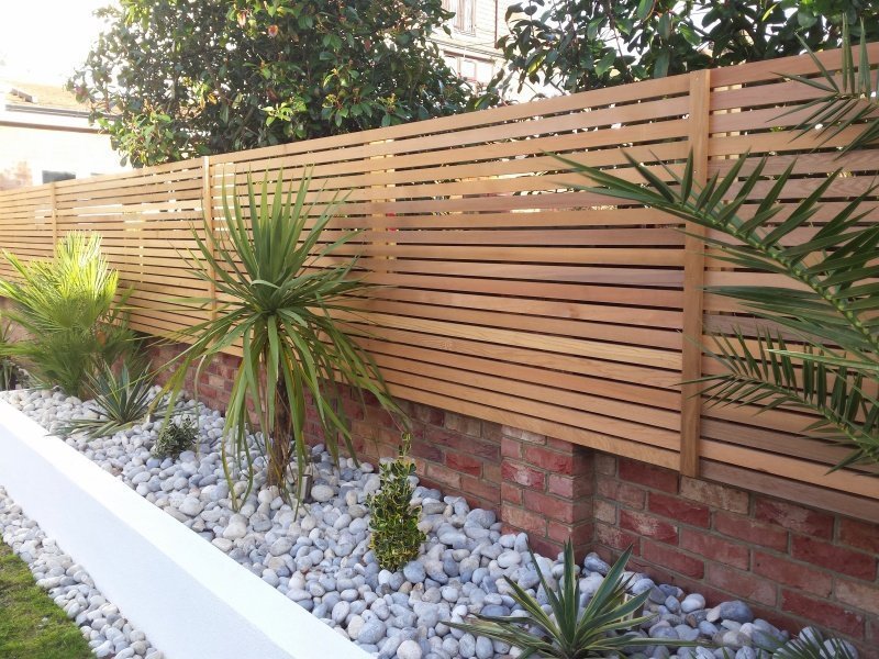 Selecting material is based on the overall style. For example, when choosing a modern landscape design, the emphasis is on a combination of light and dark colors. When arranging garden fences, the color of the tree should be taken in a dark shade, painted with oil paint or saturated with natural oil, which allows you to save the texture of the tree.