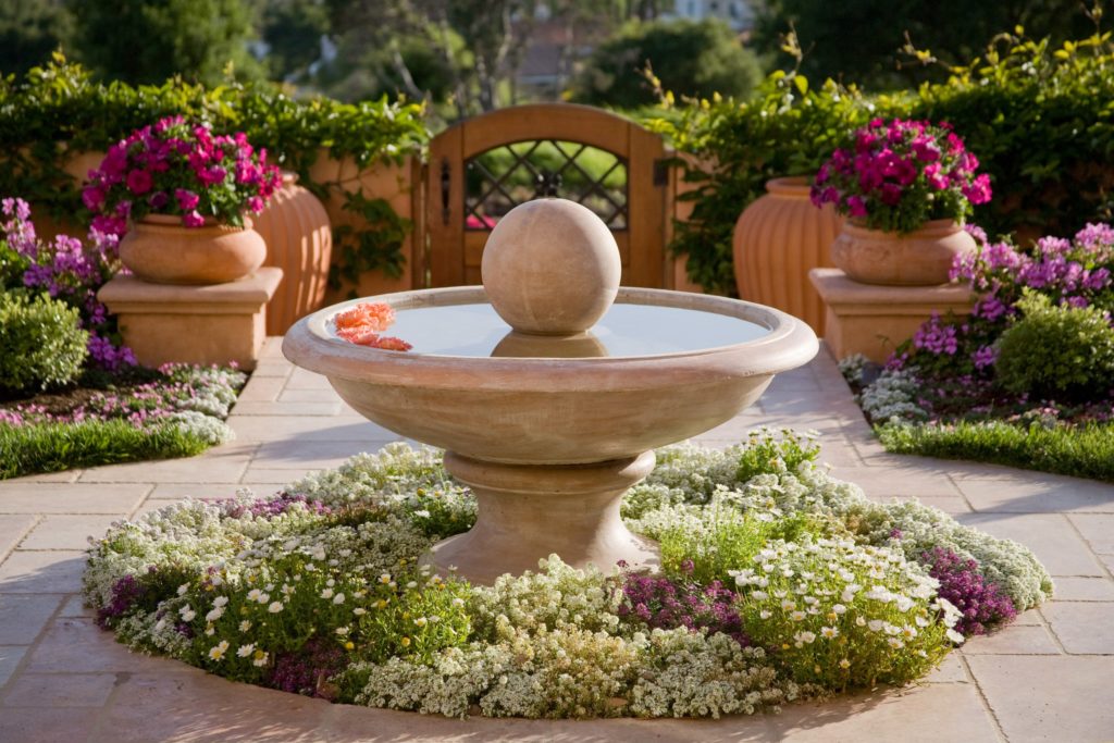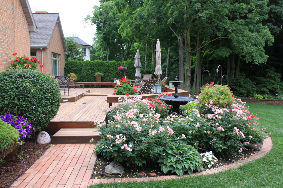 Flowers for flower beds should be calm tones. It is preferable to take from light, such as milk, light brown and pale red, to dark (turquoise, burgundy and purple). Landscaping, as well as interior design, requires emphasis. There may be several. For example, in the afternoon it is a pond with a bridge, a fountain or an alpine hill with boulders and a brook. At night, due to the lighting, another object can be accented, although the alpine mountain is beautiful, whatever one may say, it can also be illuminated at night. Special lights installed under water will look especially beautiful.