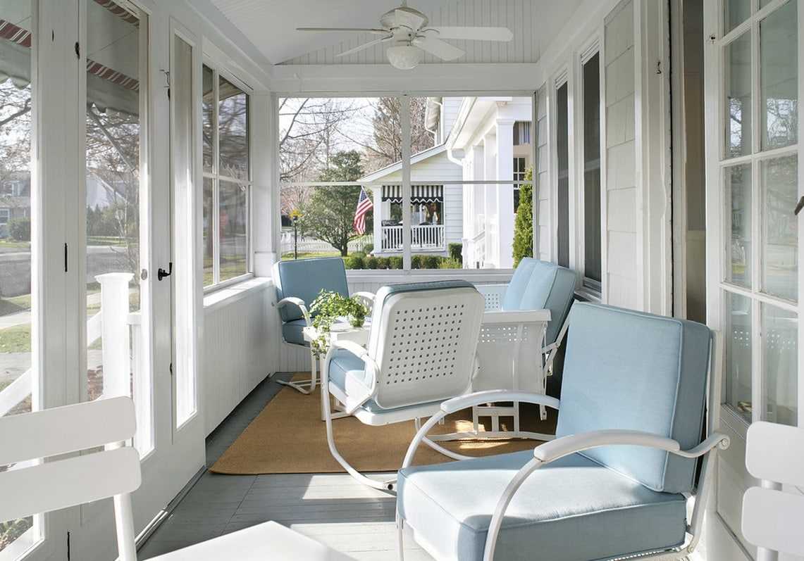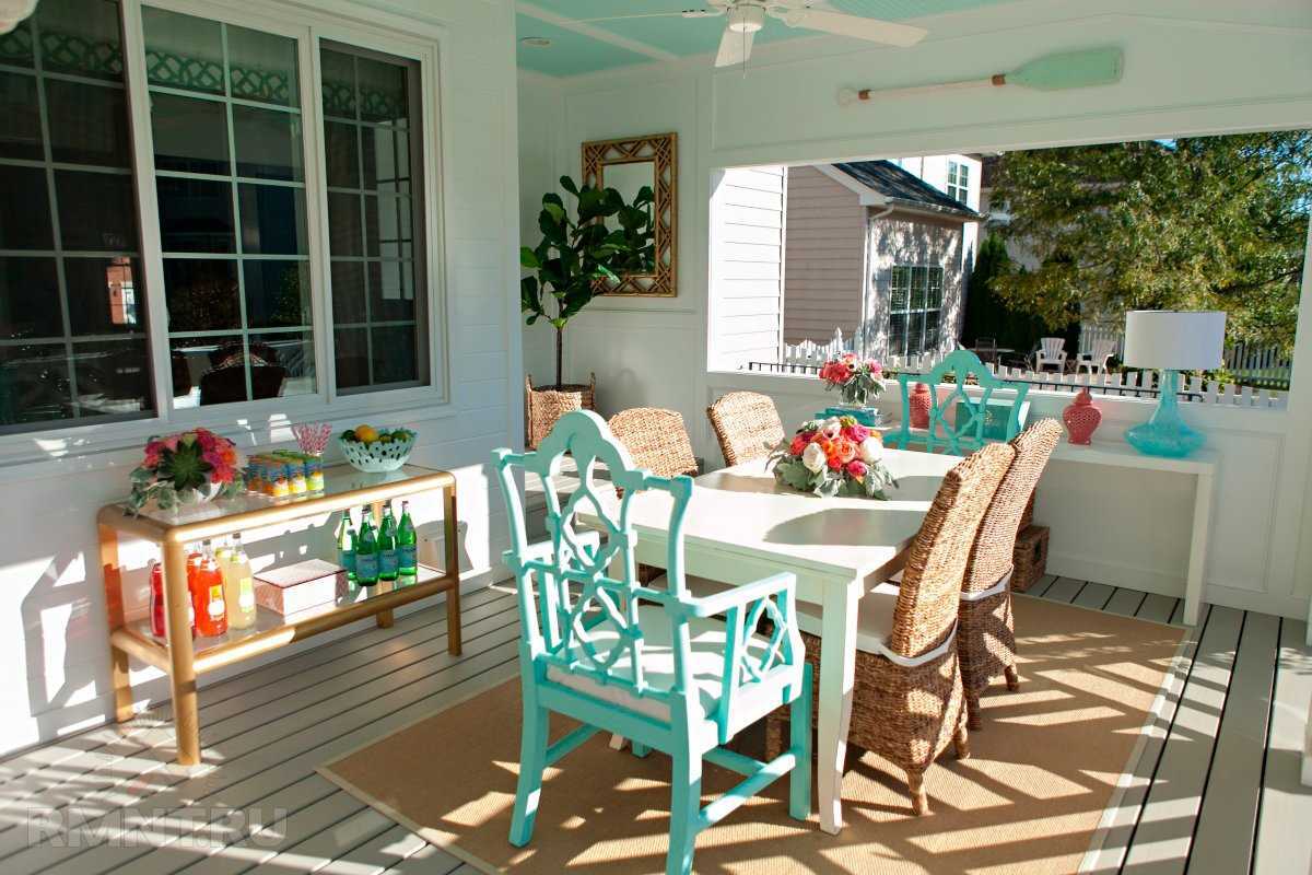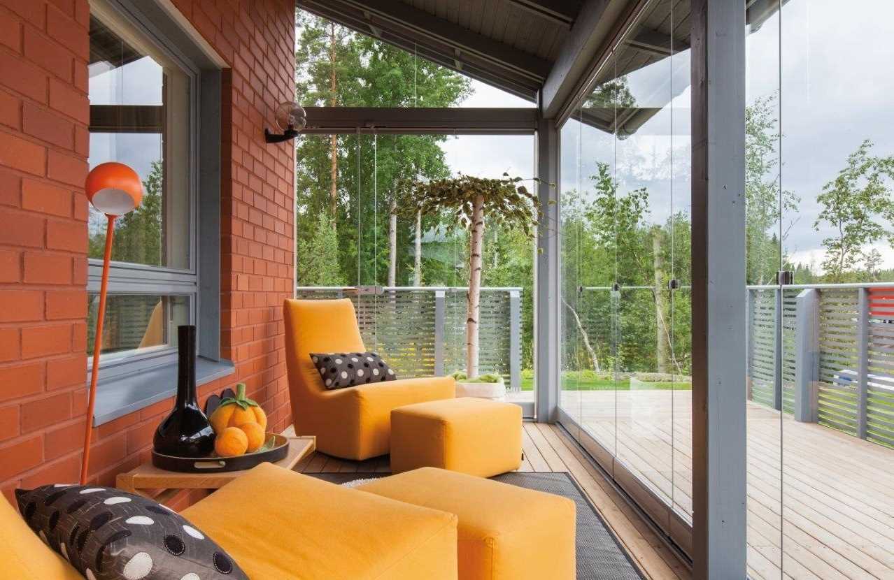 To create a good view, choose a large space, while the windows can be from 2-3 sides. The porch should not be confused with the veranda, because it does not have a roof and walls or they do not border the main building. Want to create a complete room, as in a private house? Insulate and completely close the annex, arrange it in the necessary style and arrange functional furniture.