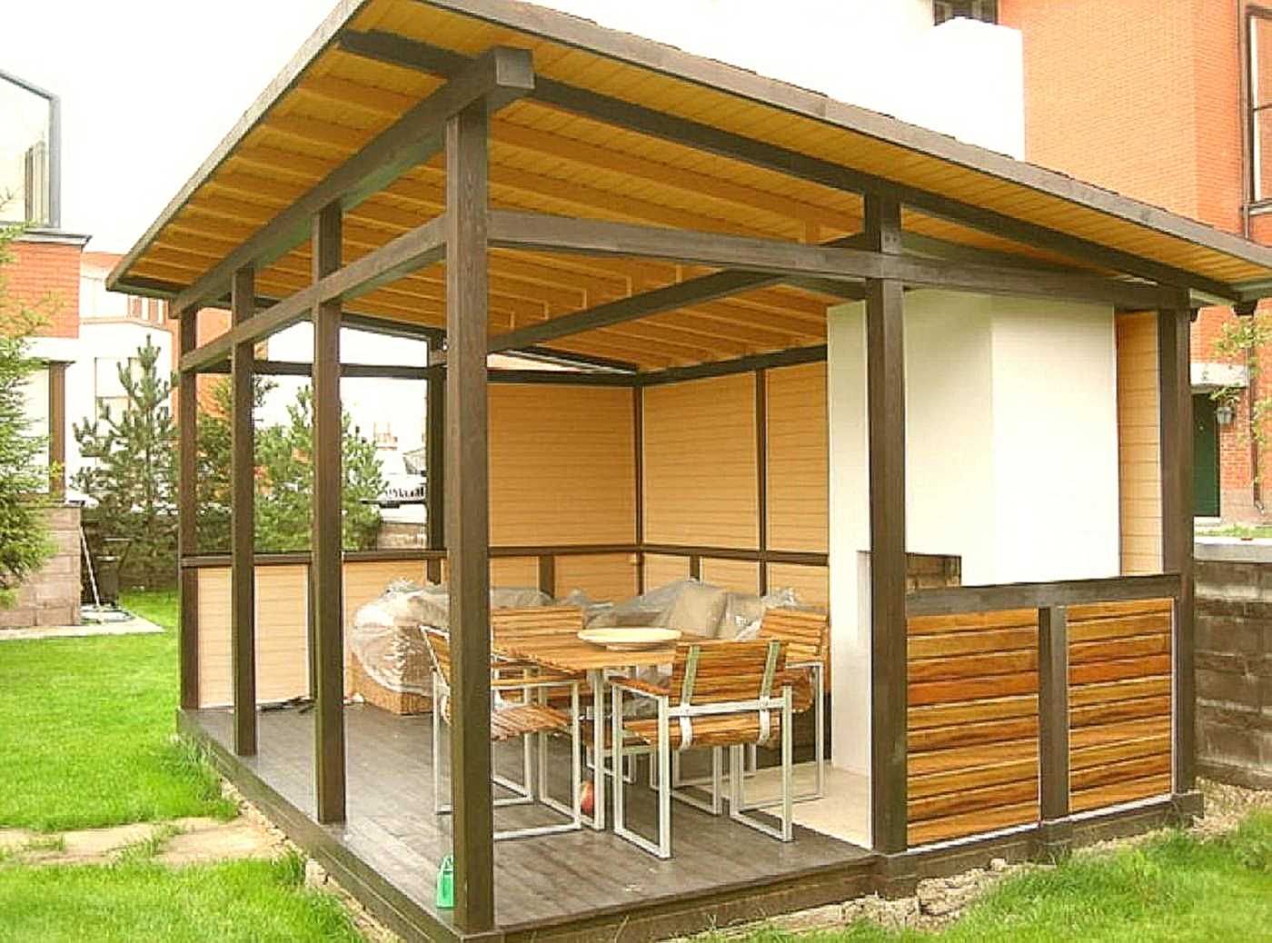 PVC film is the most practical option that can create comfort even in bad weather, but it looks much worse than the previous two options;