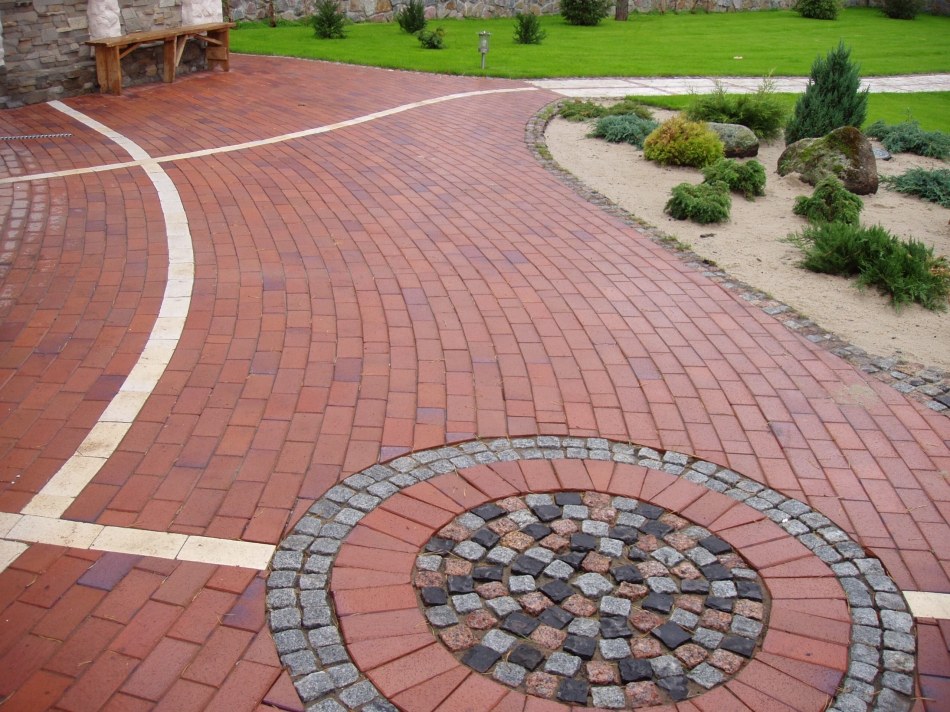 Paved paths are laid out of cement tiles, clinker bricks, artificial or natural stone