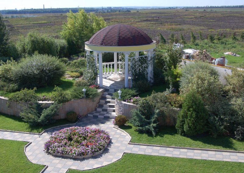 - Big - from 12 acres. Twelve acres will allow you to build a huge pond with a waterfall, a spacious gazebo, a beautiful open-air summer kitchen. In this case, ideas are not limited. Everything will depend only on the chosen style, personal wishes of the owners.
