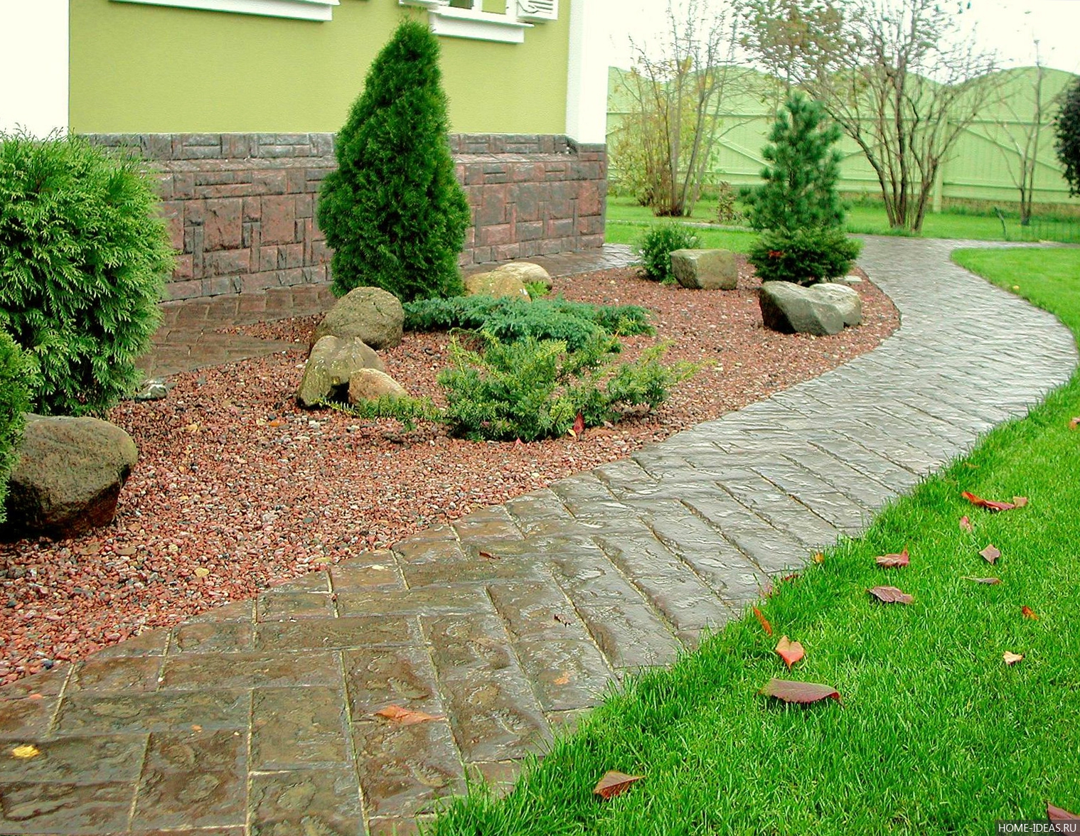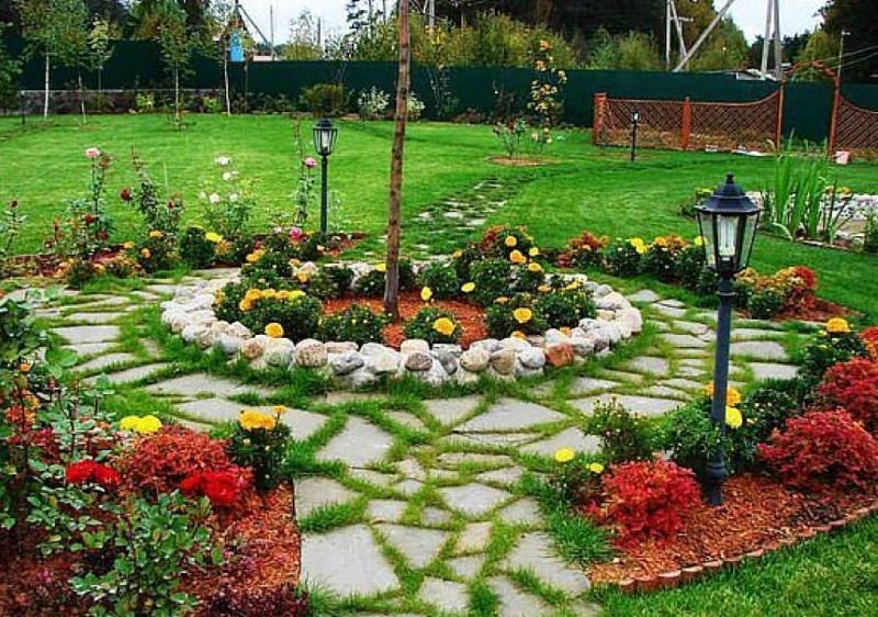 Tracks are necessary for obvious reasons. On them it will be possible to get to a specific house area without ruining the lawn. However, another important function of the tracks is decorative. Winding, bright, unusual paths will decorate the site.