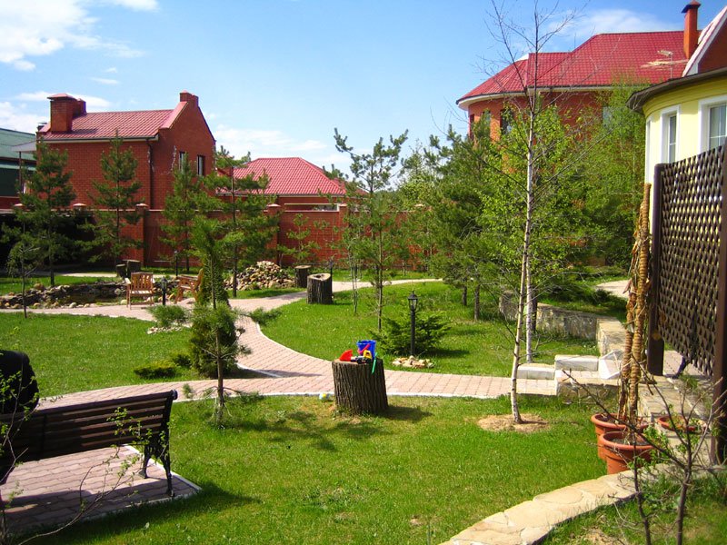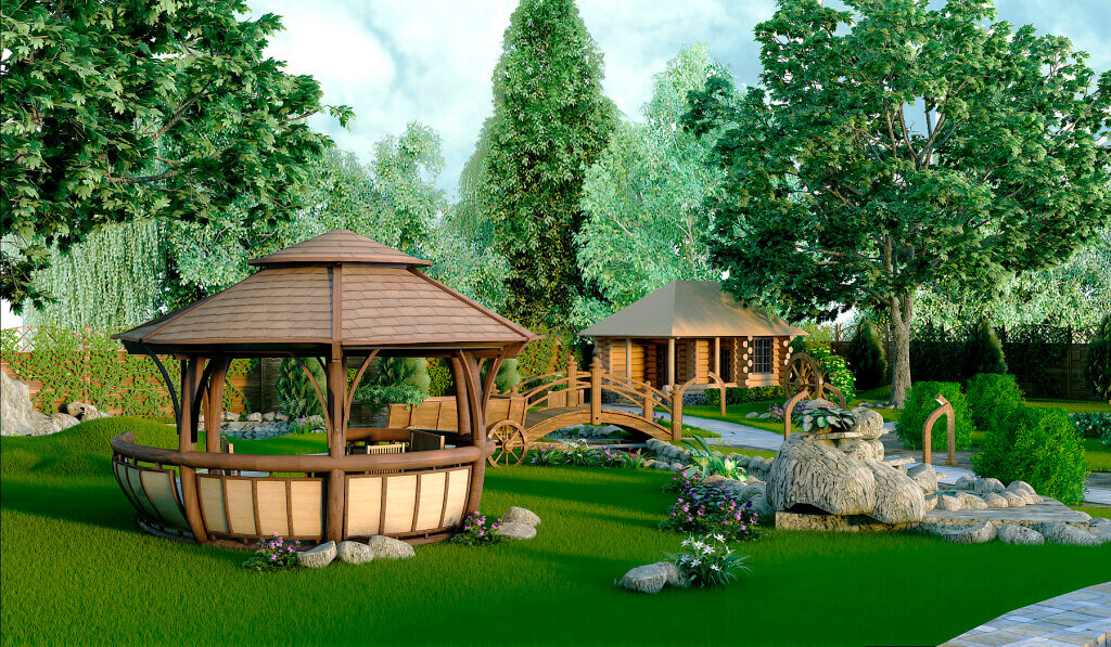 Design a place to relax first, and then fill the grounds with green spaces. So you get a comfortable structure, which later will also become a beautiful garden