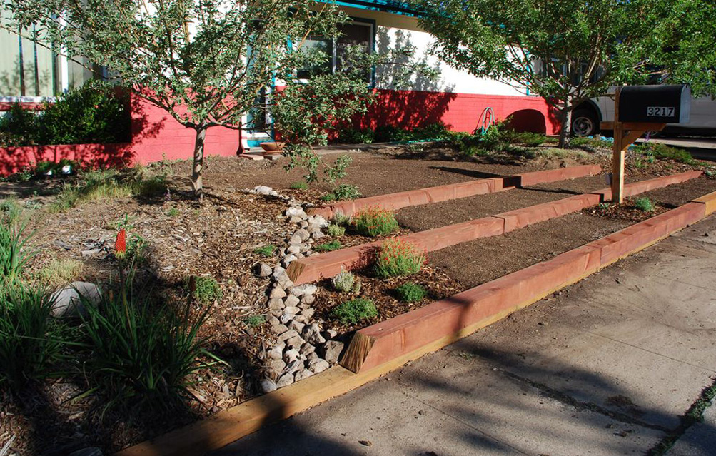 The wooden retaining wall is very interesting from a design point of view, but less durable even if hardwood is used