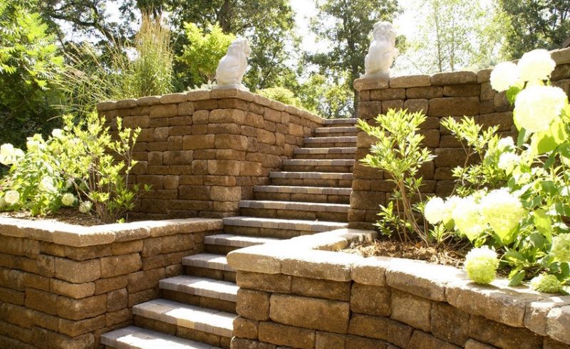 Their appearance can affect the aesthetics of the garden. They are built where there are slopes, there are large differences in relief, and terraces of different levels have been created. Most often, retaining walls are erected between the terraces.