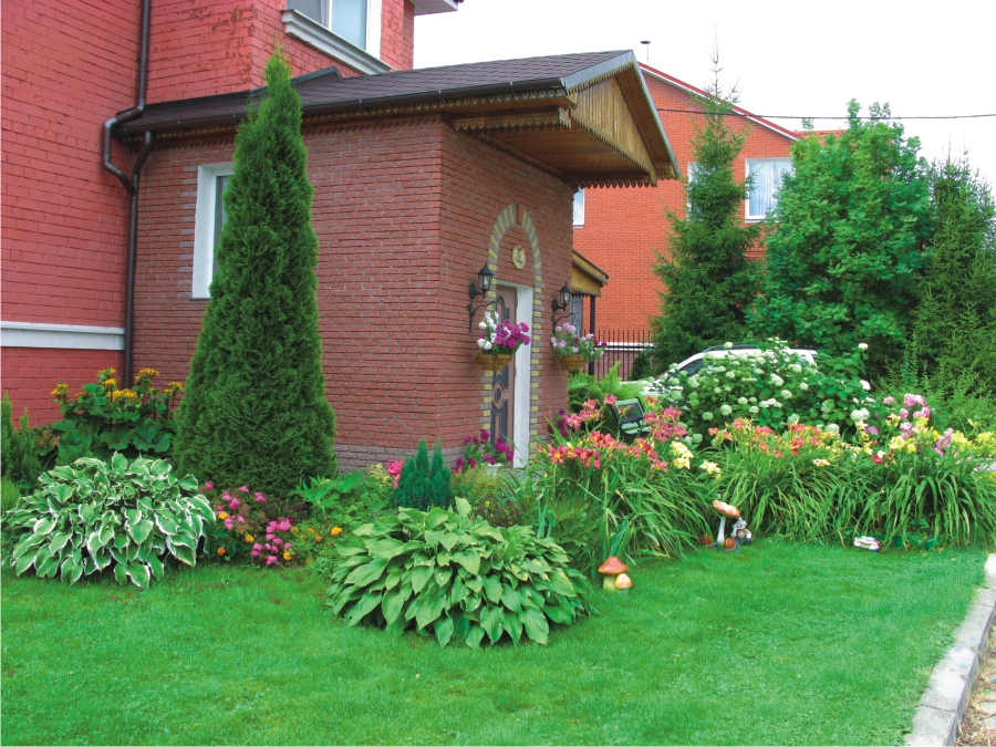 Entrance zone - the face of the house, which judges the taste of residents, their lifestyle. The main functions of this part of the garden is to create a decorative effect, protect the interior of the garden and the house from dust, noise coming from the street.