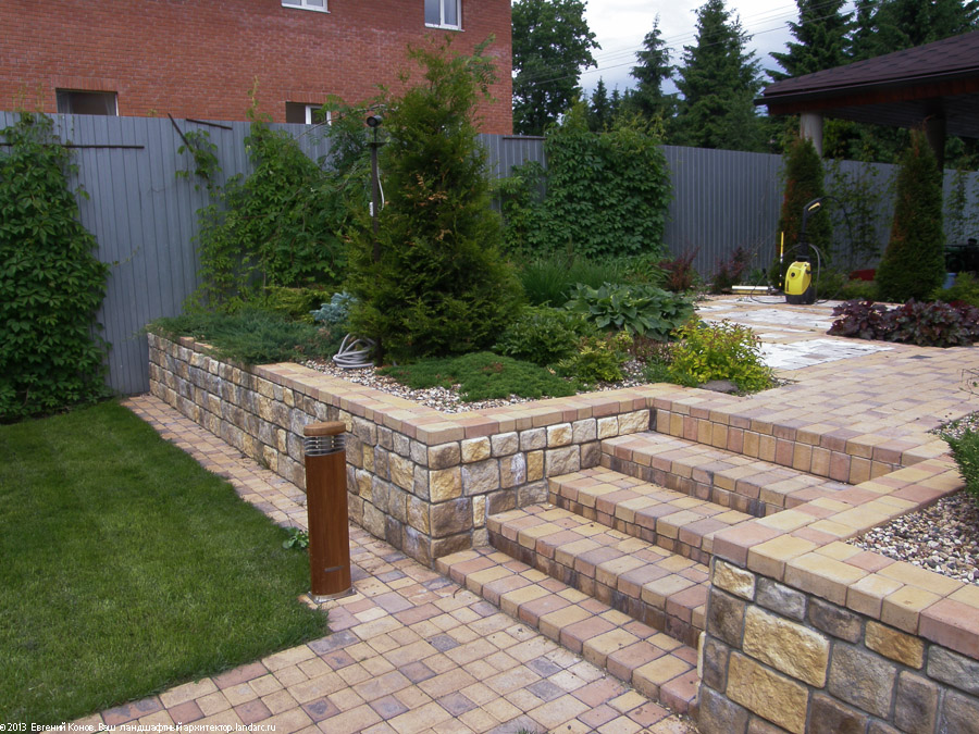 Advice! It is better to replace a high wall with two, three lower. This will facilitate the transition between levels and will not introduce dissonance into the naturalness of the relief of the site.