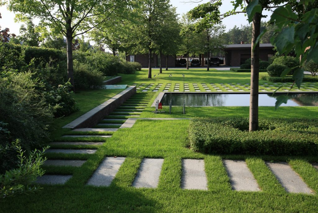- It is harmonious to enter natural transitions with created vertical and inclined lines of stairs, slopes, retaining walls.