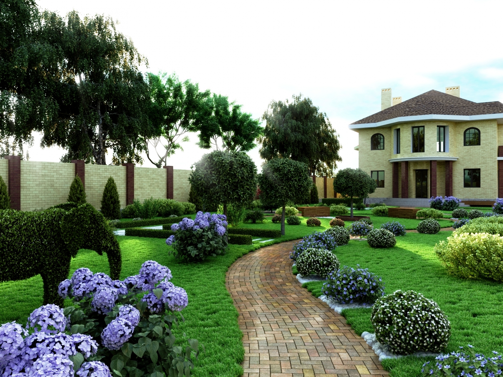 A garden looks better if it has several clear lines. For example, a path or alley with trimmed bushes