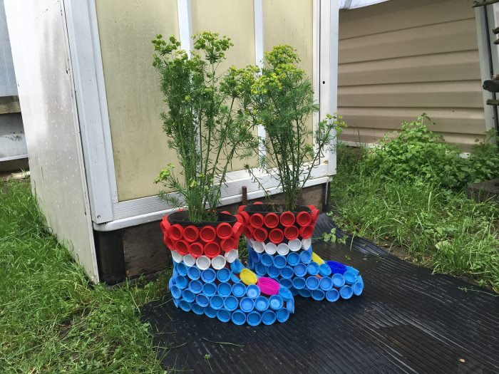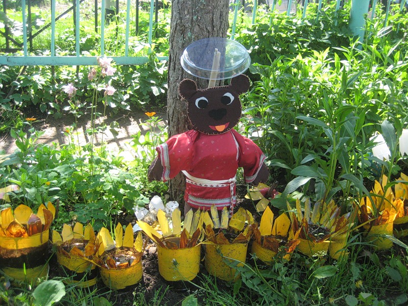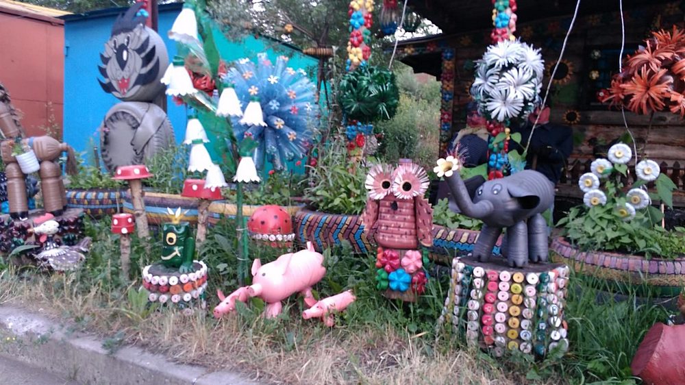 An original garden sculpture can be made from a plastic bottle