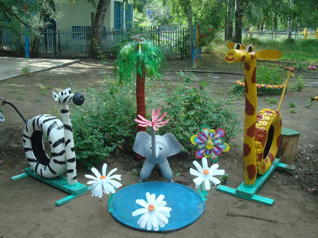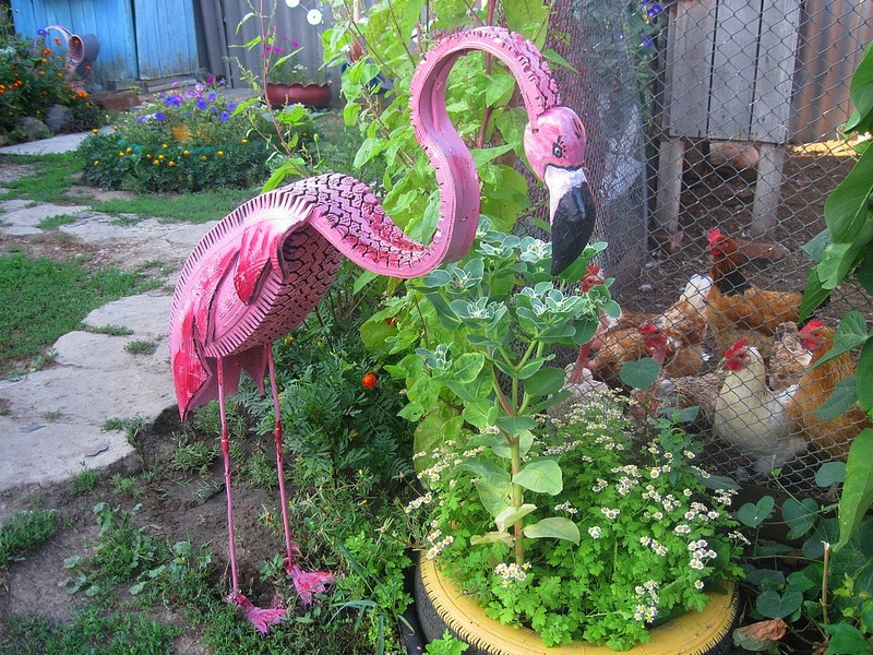There will always be old tires that you can paint and make bright garden sculptures
