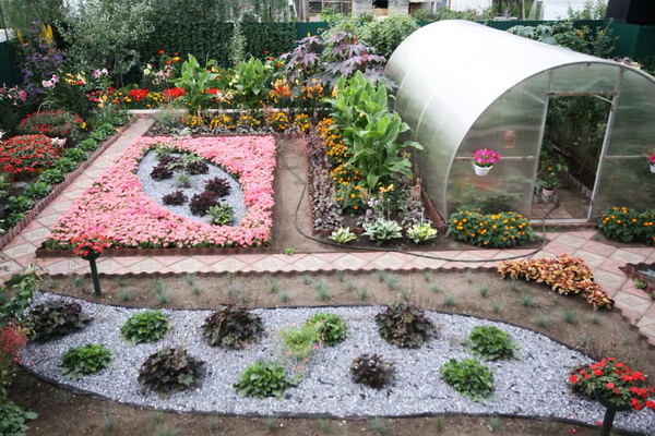 In addition to green grass, ground cover plants and hedges, the garden will be decorated with such varieties of flower beds:
