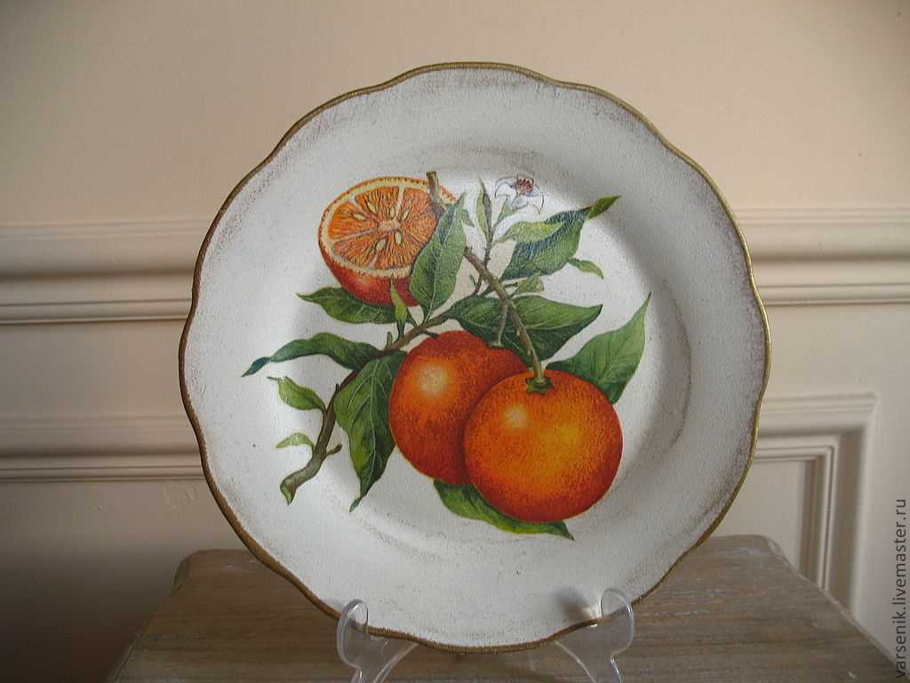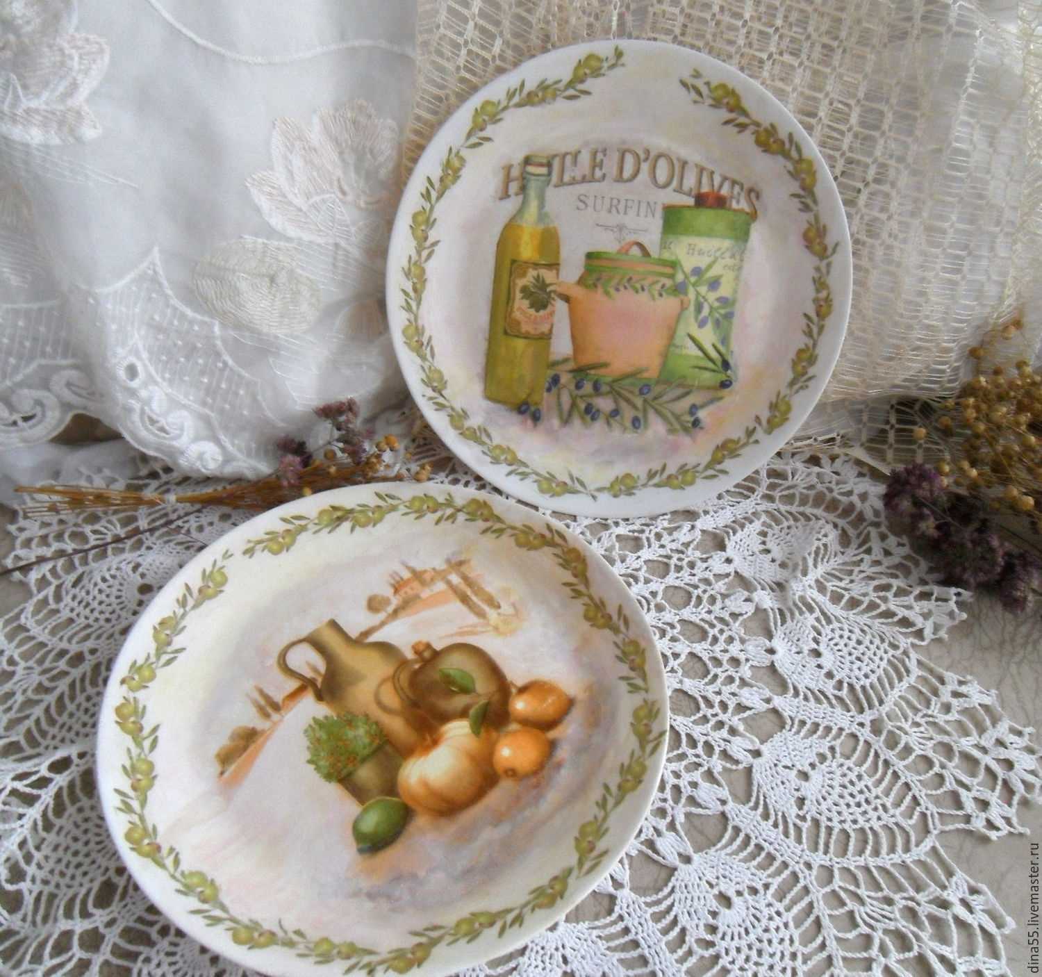 Decoupage is one of the most interesting ways of decorating plates. For decoration, you can use special napkins, clippings from magazines, photos and even fabric, with the help of which it is really possible to create original draperies. The following materials will be required for work: