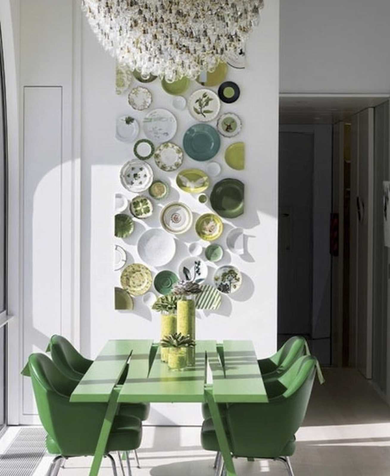 - Arbitrary arrangement of decorative plates on the wall. This method provides many opportunities for imagination.