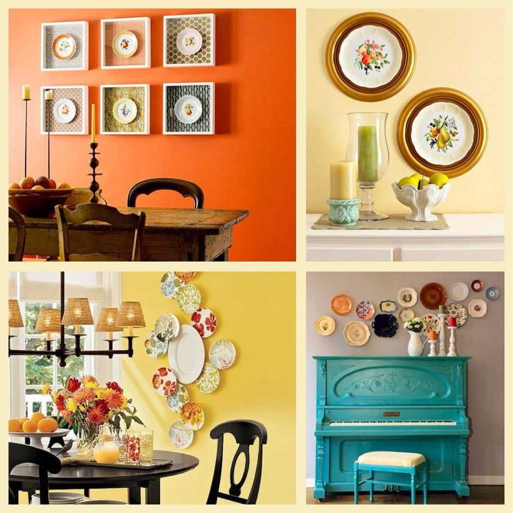 The most advantageous way plates of any shape will look on the wall in the room of the kitchen or living room. The main thing is to choose the right color for the picture and style. Exclusive decor will always delight with its beauty.