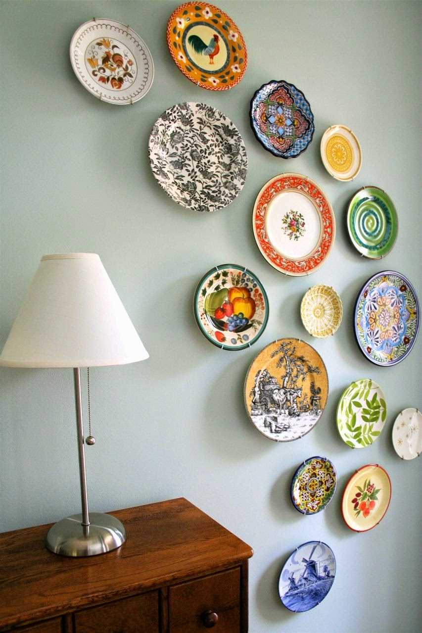 Plates do not have to be decorated, just by hanging them on the wall you can decorate the interior