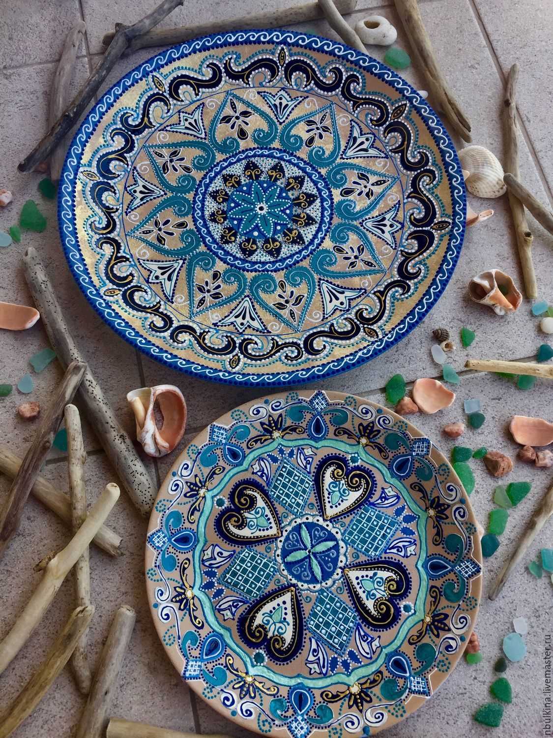 Painting plates is a rather complicated, but fascinating task. Any plot drawn is allowed, it all depends on the general interior of the house. Landscapes, ornaments, fairy-tale or mythical plots, flower arrangements, animals and birds, painting under Gzhel or Khokhloma look great on decorative plates.