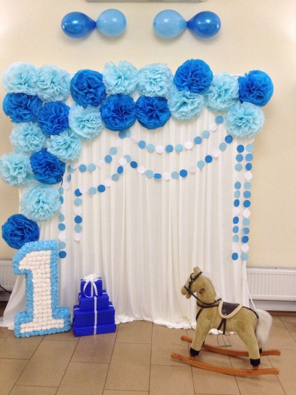 To create an atmosphere of celebration in the house, if the boy is 1 year old, you can use a certain color scheme (white, blue, blue and green tones) and attributes characteristic of the life of young hooligans (cars, balls, robots, etc.)