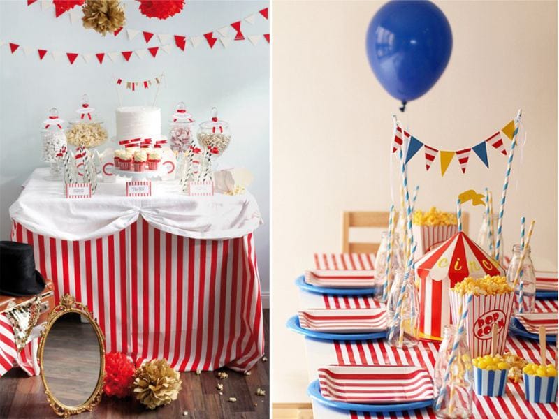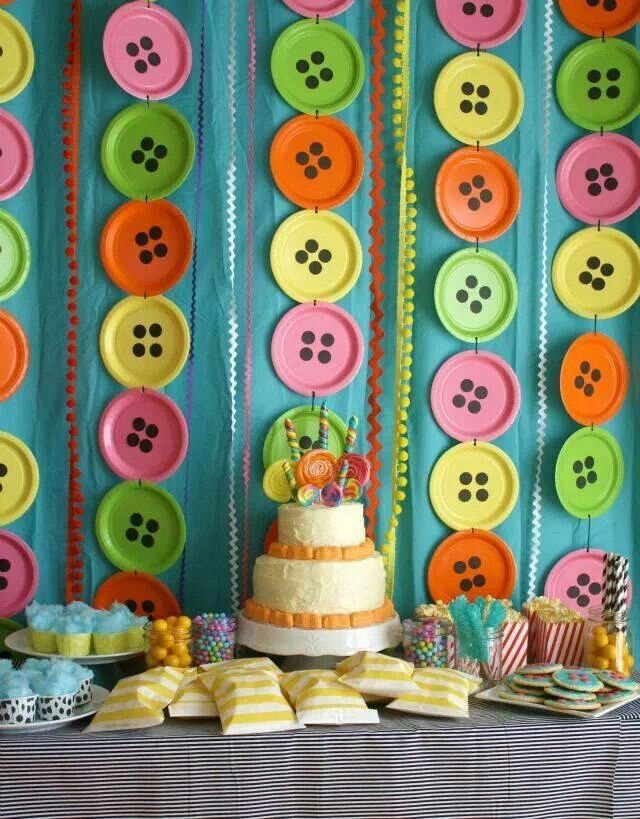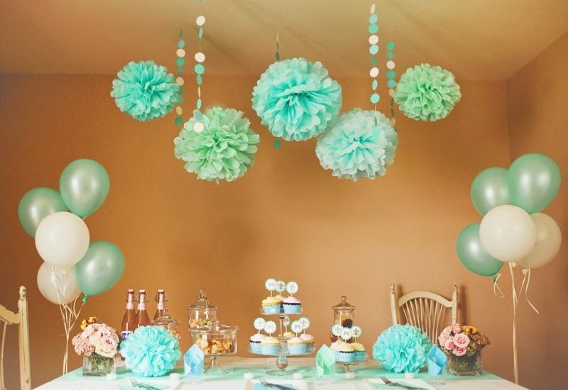 - you can hang decorations from paper pompons, balloons from threads, balloons filled with helium above the table.