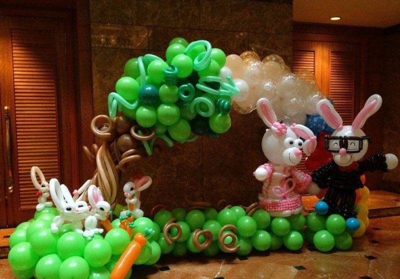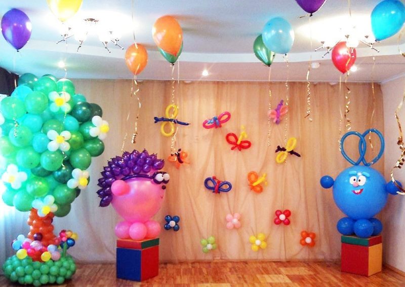 - Balloons. The classic way to design a children's holiday. Order helium-filled balloons for your birthday and place them under the ceiling. In addition, place in a space various compositions of balls (in the form of an arch, number, name or garland).