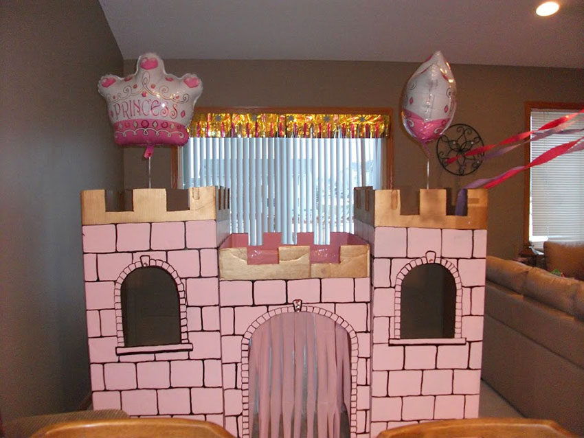 - Kingdom of the little prince. From cardboard you can make a castle in blue and blue tones. For a princess who celebrates her first birthday, the decor is similarly made, only the color is changed to pink.