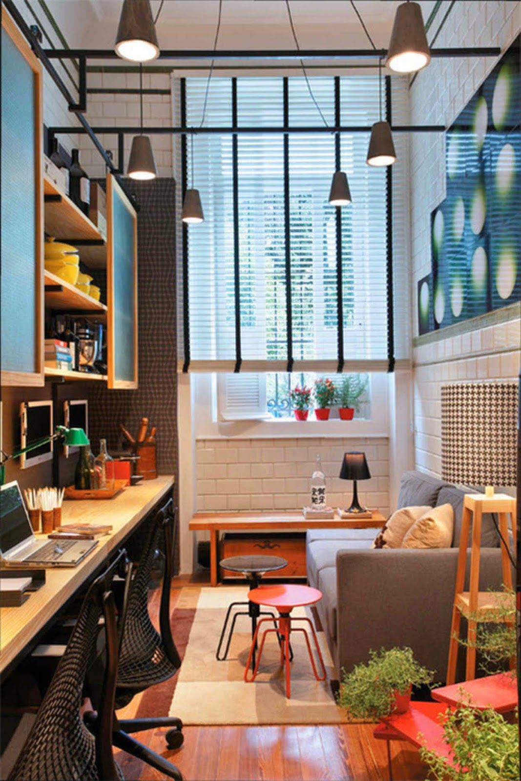 The workspace will look no less stylish in the styles of pop art, contemporary, high-tech, loft, avant-garde and eclecticism.