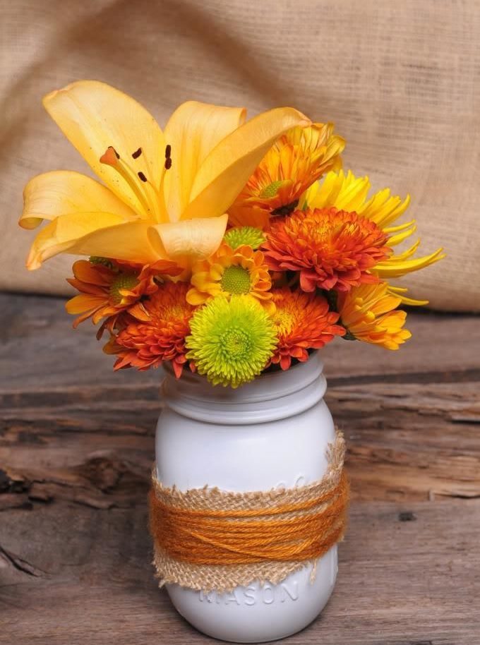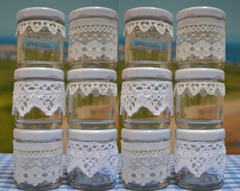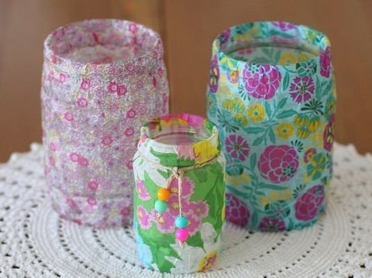 Fabric materials are also suitable for decorating a glass jar. The most common are felt, wool and twine.