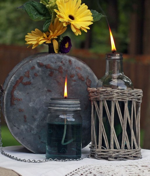 Great design will come out of the vine. Suitable green or brown, depending on the chosen style. With a vine, you can simply wrap the jar, creating a kind of cover. It is possible to combine this method with others and create interesting designs.