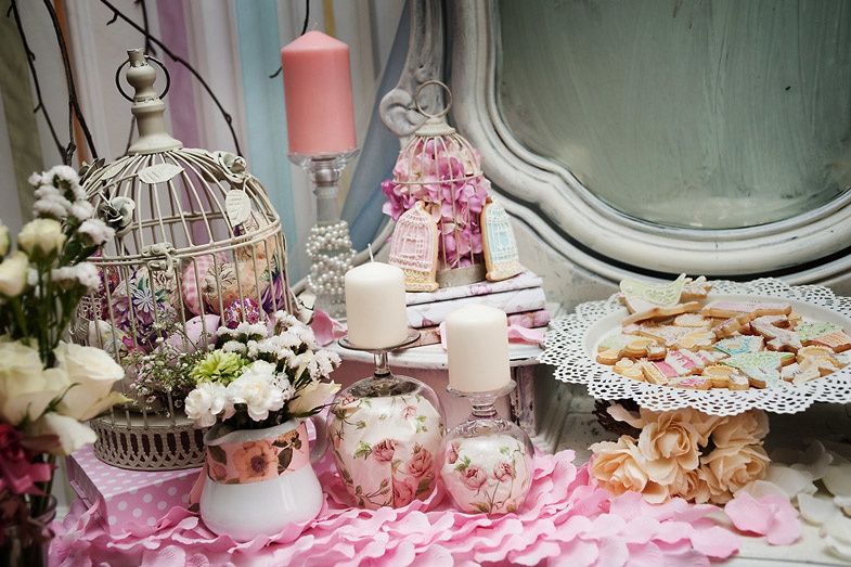 For a girl, the style of shabby chic is more suitable. According to the spectrum of colors, this design is leading among others. The festive table, decorated for the birthday of the hero of the occasion, resembles a dollhouse, with its colorful shades and colorful decorations.