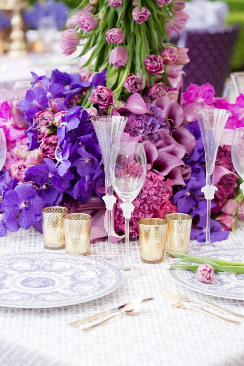 Gold embossed dishes and velvet tablecloths are suitable for serving