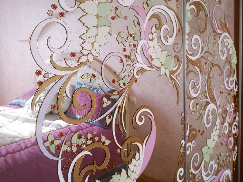 Even children can decorate a flat glass surface, including a mirror with their own hands, using purchased or home-made stencils.